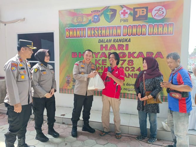 Kapolresta Pekanbaru kepada awak media menyampaikan, kegiatan bakti kesehatan berupa donor darah tersebut diselenggarakan dalam rangka menyambut HUT Bhayangkara ke-78.