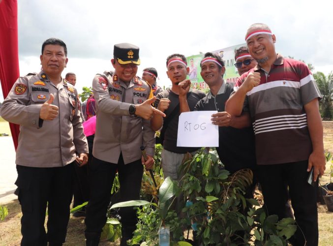 PELALAWAN – Memeriahkan Hari ulang Tahun Bhayangkara ke-78, Polres Pelalawan gelar acara penanaman pohon dalam rangka ketahanan pangan di Lapangan Aspol Polres Pelalawan Bumi Lago Permai, Kecamatan Pangkalan Kerinci Kamis (27/6/2024).