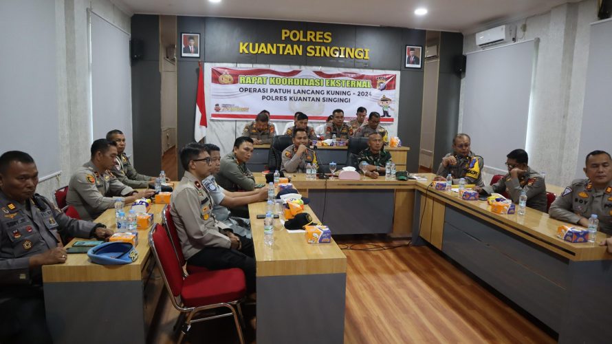 KUANSING – Polres Kuansing gelar rapat koordinasi eksternal Operasi Patuh Lancang Kuning 2024, Senin (15/7/2024).