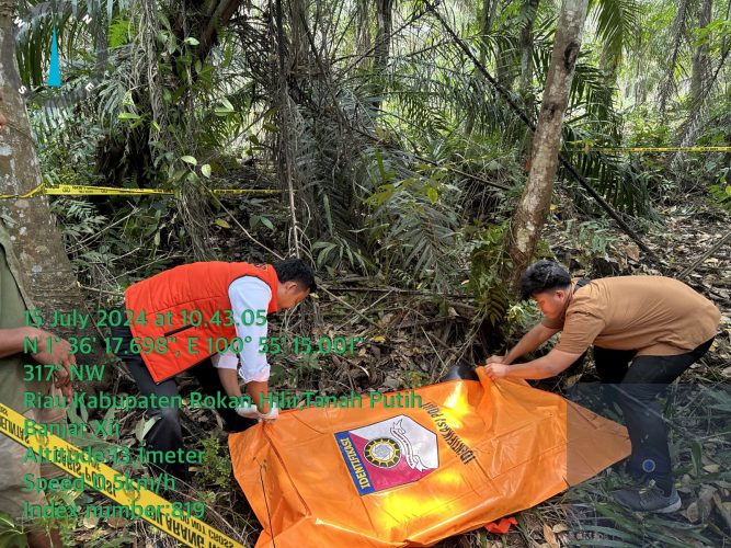 ROHIL – Tim Gabungan Polres Rohil dan Polsek Tanah Putih lakukan evakuasi terhadap sesosok mayat yang ditemukan di Menggala Jungction RT 19/RW 04 Kelurahan Banjar XII Kecamatan Tanah Putih, Senin (15/7).