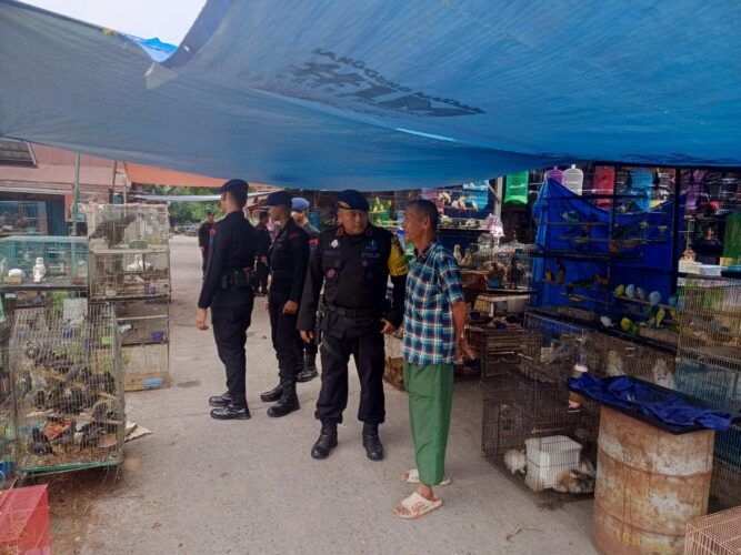 PEKANBARU – Subsatgas Jibom Dalam Rangka Operasi Mantap Praja Lancang Kuning 2024 Polda Riau pada Selasa (1/10) patroli dialogis bersama masyarakat di Pasar Palapa Jalan Durian Kota Pekanbaru.