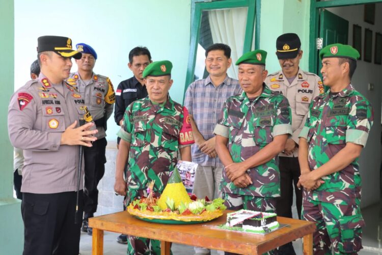 Dalam momen spesial ini, Kapolres Pelalawan, AKBP Afrizal Asri SIK bersama PJU memberikan kejutan kepada anggota TNI dengan membawa nasi tumpeng serta kue tar sebagai simbol rasa syukur dan penghormatan. Acara dimulai dengan ucapan selamat HUT TNI ke-79 yang disampaikan oleh Kapolres Pelalawan , Dalam suasana yang hangat, pemotongan kue juga dilakukan sebagai bagian dari perayaan tersebut.