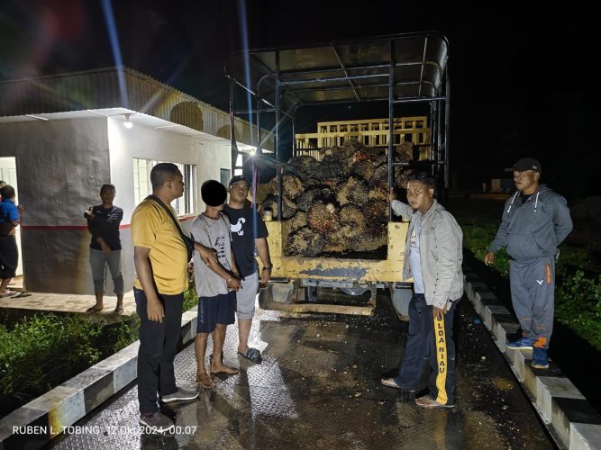 KUANSING – Polisi berhasil mengungkap kasus pencurian buah kelapa sawit milik PT Duta Palma Nusantara, Jumat (11/10/2024). Peristiwa pencurian terjadi di Divisi V Blok F1 PT DPN, Desa Banjar Benai, Kecamatan Benai.