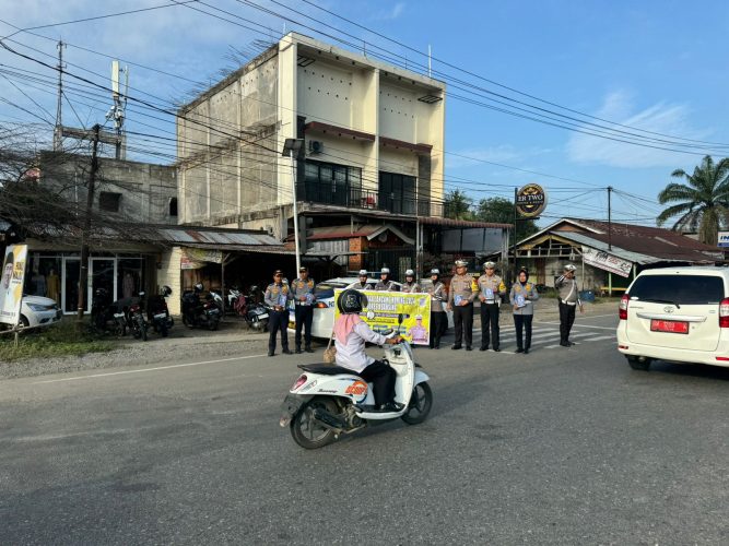 KUANSING – Satlantas Polres Kuansing menggelar kegiatan himbauan informasi mengenai pelaksanaan Operasi Zebra Lancang Kuning 2024 pada Selasa (22/10/2024).