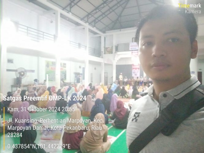 PEKANBARU – Personel Subsatgas Intelijen Polda Riau dalam rangka OMP-LK 2024 lakukan pengamanan dilokasi kampanye dialogis Cawako/Cawawako nomor urut 01 Muflihun-Ade Hartati pada Kamis (31/10) malam.