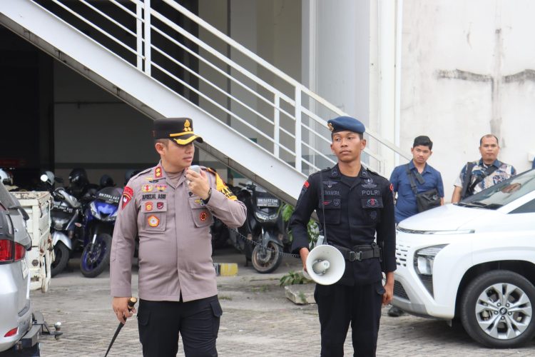 PELALAWAN – AKBP Afrizal Asri SIK pimpin apel gabungan kesiapan pengamanan debat publik pemilihan Bupati dan Wakil Bupati Kabupaten Pelalawan tahun 2024 di halaman parkir belakang The Zuri Hotel, Pekanbaru, Sabtu (2/11).