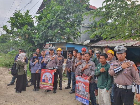 PELALAWAN – Mendekati Pilkada 2024, Polisi Lalu Lintas di Pelalawan tak henti sambangi dan sampaikan pesan Kamtibmas Pilkada damai di area PT Andika Jaya Kesuma dan PT Poliline Jalan Lintas Timur KM 67 Kota Pangkalan Kerinci, Rabu (13/11/2024).