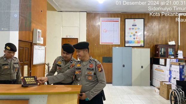 PEKANBARU – Dalam memberikan rasa aman dan nyaman kepada pegawai penyelenggara Pilkada serta antisipasi terjadinya ancaman gangguan di kantor penyelenggara Pilkada yakni Kantor Bawaslu Provinsi Riau.