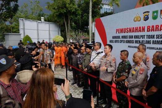 PEKANBARU – Jelang Bulan Suci Ramadhan, Polda Riau memusnahkan barang bukti hasil penindakan kegiatan rutin yang ditingkatkan (KRYD) selama satu bulan penuh, Kamis (27/2/2025).