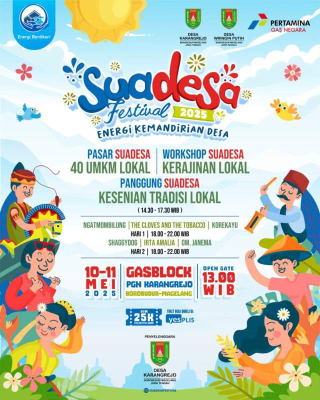 Jakarta, – Dalam rangka semarak HUT ke 60 pada 13 Mei 2025, PT Perusahaan Gas Negara Tbk (PGN) menyelenggarakan Suadesa Festival 2025 pada 10 – 11 Mei 2025 di Gasblock PGN Karangrejo, Magelang. Festival ini merupakan perwujudan program Desa Energi Berdikari Pertamina dimana Desa Karangrejo, Borobudur yang merupakaan desa binaan PT PGN Tbk.