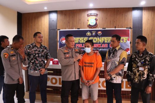 “Press release hari ini menghadirkan dua pelaku yakni inisial VF (26) alamat Jalan Kopi baik baik Kelurahan Bagan Barat Kecamatan Bangko dengan BB yang telah disita berupa sabu seberat kotor 967,3 gram. KW alias R (34), alamat Jalan Kencana Desa Balai Jaya dengan BB sabu seberat 82,48 gram,” ucap AKBP Isa Imam Syahroni.