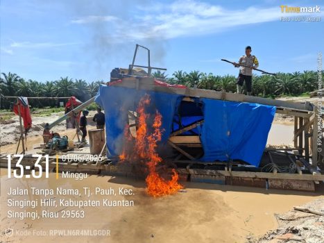 Kapolres Kuansing, AKBP Angga F Herlambang SIK SH melalui Kapolsek Singingi Hilir, Iptu Alferdo Krisnata Kaban SH menyampaikan, kegiatan ini merupakan bagian dari operasi rutin Polsek Singingi Hilir dalam rangka menjaga ketertiban dan menekan kerusakan lingkungan akibat aktivitas penambangan ilegal.