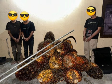 SIAK — Polsek Tualang mengungkap dugaan kasus pencurian 24 tandan buah segar (TBS) kelapa sawit milik PT Surya Inti Sari Raya (SIR) di areal perkebunan Sei Lukut, Kampung Tualang, Kecamatan Tualang. Tiga orang pelaku berhasil diamankan berikut barang bukti sebanyak 800 kilogram TBS.