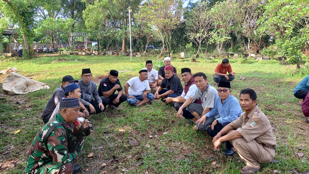 Bekasi, Setu – Babinsa Koramil 06/Setu bersama jajaran perangkat desa menghadiri prosesi pemakaman seorang warga di Perumahan Griya Mustika Media RT 02/014, Desa Lubangbuaya, Kecamatan Setu, Kabupaten Bekasi, Minggu (28/9/2025).