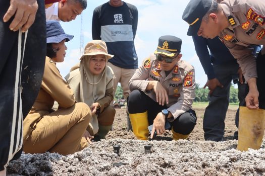 Kapolres juga menambahkan bahwa pengecekan PH tanah dan kelembaban tanah dilakukan bersama dengan penyuluh pertanian untuk memastikan kondisi lahan optimal untuk penanaman jagung.