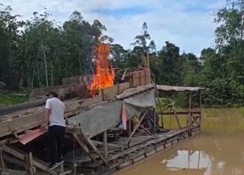 Tim kemudian melakukan tindakan tegas dengan merusak dan membakar seluruh rakit tersebut agar tidak dapat lagi digunakan oleh para pelaku penambangan ilegal.