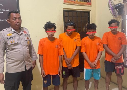 Keempat pelaku berinisial S alias I, M alias O, S alias P dan DI alias D, semuanya warga Desa Kerumutan, Kecamatan Kerumutan, Kabupaten Pelalawan.