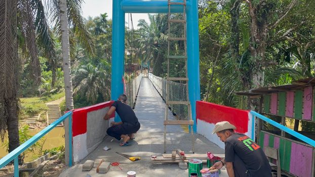 Kegiatan yang berlangsung sejak pukul 08.00 WIB hingga 16.00 WIB tersebut difokuskan pada tahap akhir berupa pengecatan jembatan sebagai penyempurna sebelum digunakan sepenuhnya oleh masyarakat.