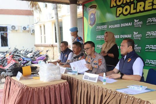 Pengungkapan kasus tersebut disampaikan dalam konferensi pers pada Rabu, 11 Maret 2026 yang dipimpin langsung oleh Kapolres Dumai, AKBP Angga Febrian Herlambang didampingi Kasat Narkoba AKP Riza Effyandi dan Kasi Humas AKP Zaini Waluyo.