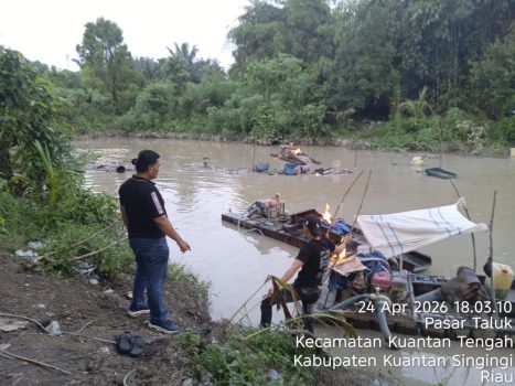 KUANSING – Polres Kuantan Singingi kembali melakukan penertiban terhadap aktivitas Penambangan Emas Tanpa Izin (PETI) di Dusun Tobek Panjang, Desa Koto Taluk, Kecamatan Kuantan Tengah, Jumat (24/4/2026) sore.